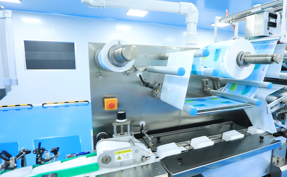 CD-2000H-16L全自動(dòng)濕巾生產(chǎn)線生產(chǎn)一次性家庭清潔用濕巾或嬰兒濕巾。是由8組原布架1切2帶自動(dòng)分切,折疊、加藥液、定長(zhǎng)度切斷、計(jì)數(shù)堆垛、再自動(dòng)輸送到包裝機(jī)進(jìn)行包裝的機(jī)器。本機(jī)原材料使用不停機(jī)自動(dòng)換料裝置,減少更換原材料的時(shí)間,有效的提高了工作效率,布接頭在線檢測(cè)和駁接口在線剔除,增加張力控制與自動(dòng)糾偏功能。所有過(guò)程從原料到包裝成品都在機(jī)器上完成,生產(chǎn)過(guò)程快速、衛(wèi)生。主折疊機(jī)與包裝機(jī)可以自動(dòng)連接使用又能在生產(chǎn)特殊規(guī)格產(chǎn)品時(shí)分開(kāi)獨(dú)立使用,能使客戶最大限度利用機(jī)器、產(chǎn)生最大的效益。
